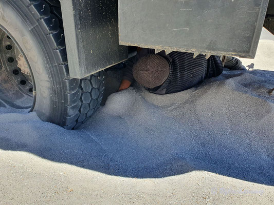 Nach diesem Ausflug geht es weiter mit beiden Fahrzeugen südwärts. Durch die ersten Dünenlandschaften erreichen wir das
