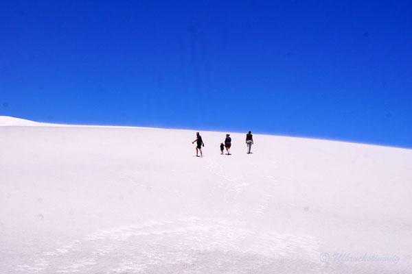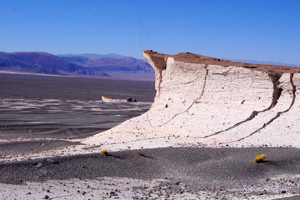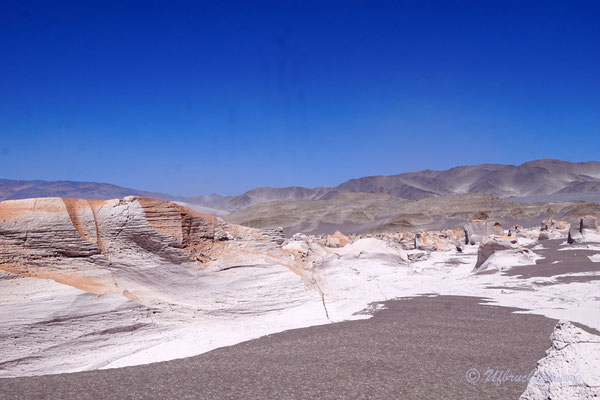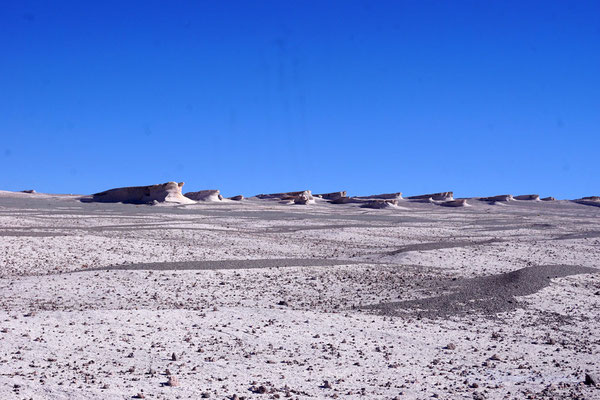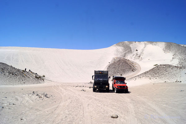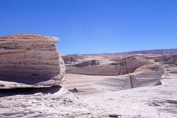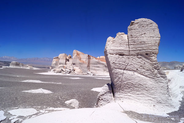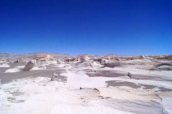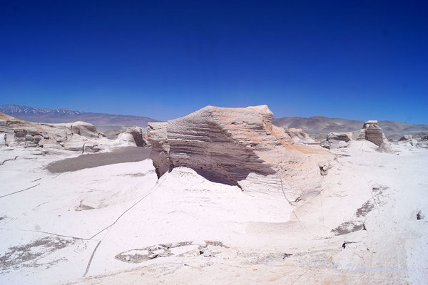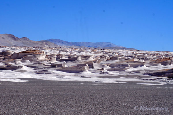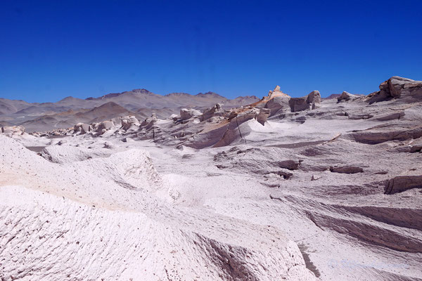 Bimssteinfeld "Piedra Pomez". Weisser Sand wechselt zu weissem Bimsstein - bizarre Formen vom Wind und Sand geschliffen. Die Landschaft ist einzigartig. Aber auch hier: Wer sich hier eine