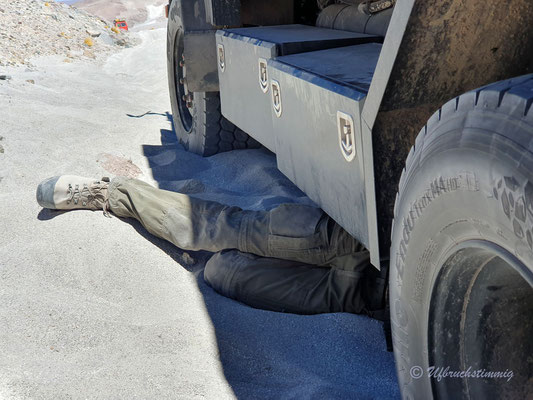 Bei den zweiten heissen Quellen machen wir es schlauer: Wir fahren erst mal mit Dodo vor. Und auch hier kommen wir zum Schluss: Den grossen Truck lassen wir lieber stehen.
