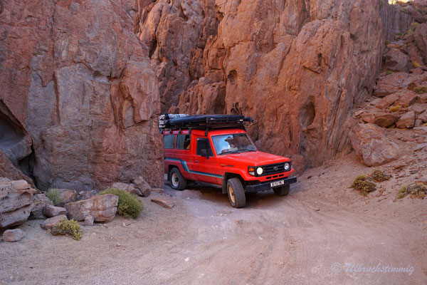 Nach dem Entspannungstag geht es dann über die Haarnadelkurven nach Las Papas. Es ist eng und die Hänge sind steil, ja, aber man kommt hier aktuell problemlos durch - auch mit einem grossen