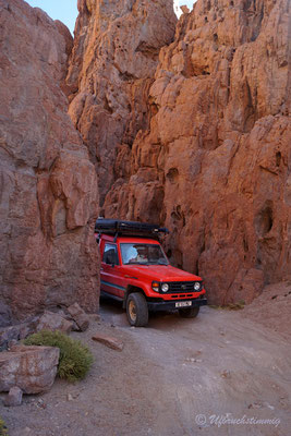 Auch hier fegt ein beissender Wind durch die Felsen, inkl. Sandkörner. Wir müssen mehrfach hinter den Felsen Schutz suchen und abwarten, bis wir uns wieder raus wagen um gegen den Wind und Sand