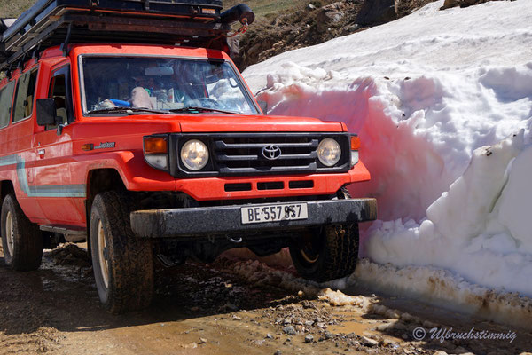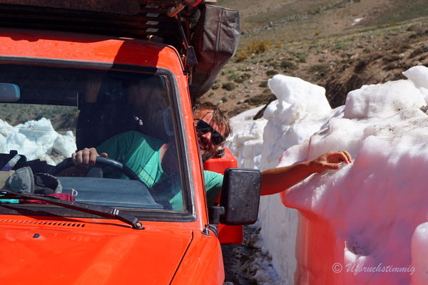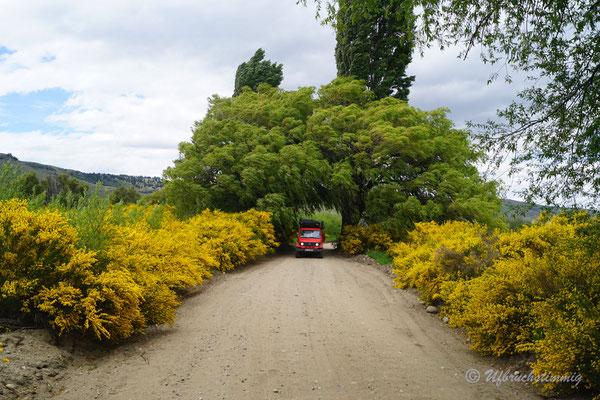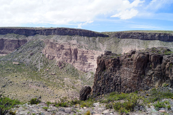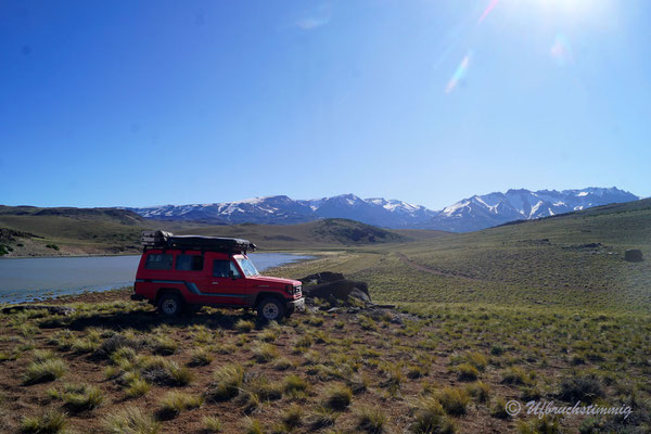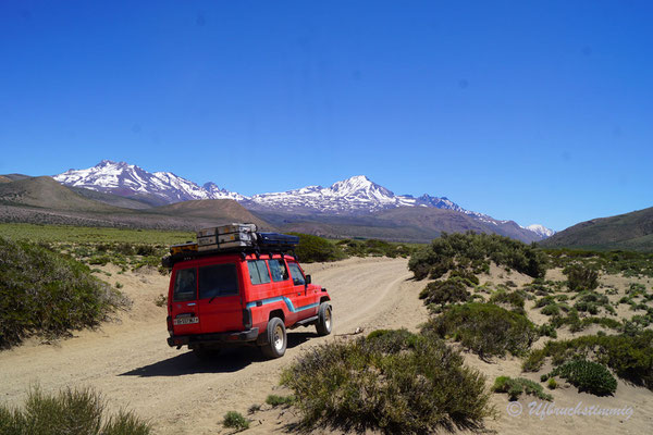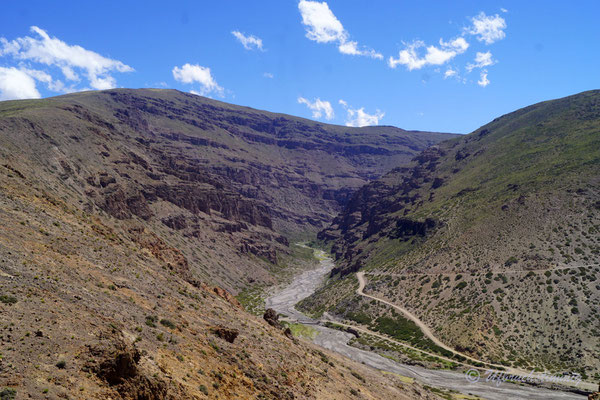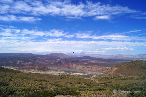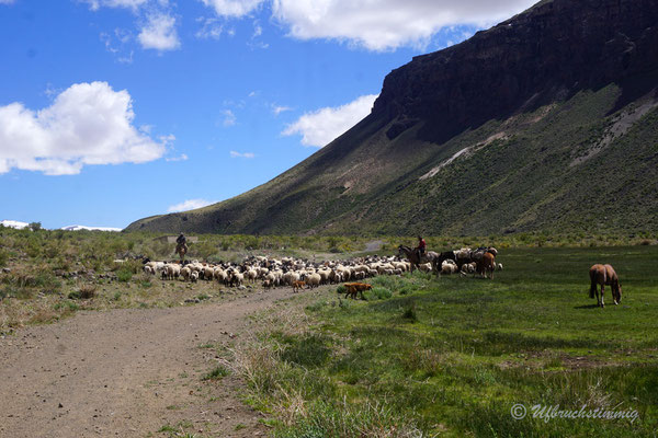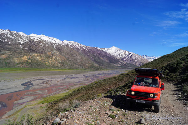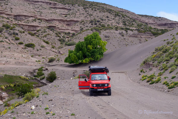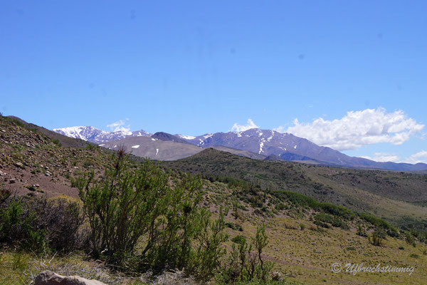 Südlich von Barrancas versuchen wir es nochmals mit einem Seitental über die RP53. Über diese Strecke sollte man eigentlich die 54 erreichen bis nach Varvarco. Aber - nach einem platten Reifen - treffen wir Gauchos, die uns dringend Abraten, uns durch zu schlagen. Die Strasse sei noch nicht durchgängig, von Schnee bedeckt und erst vor ein paar Tagen steckte ein Auto fest. Also gehts mal wieder zurück - aber nur um der Landschaft willen war dies schon ein absolut gigantischer "Umweg".