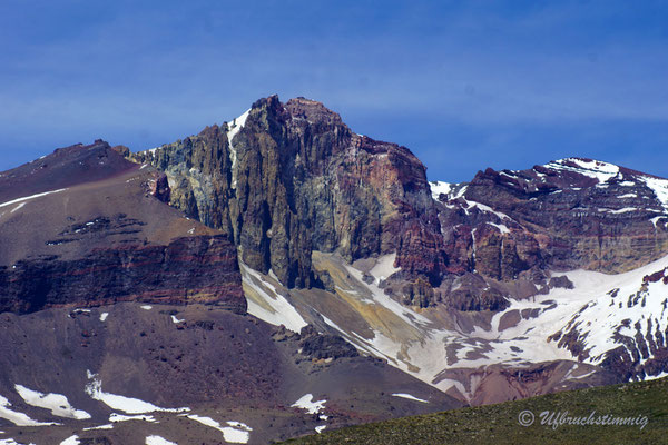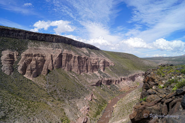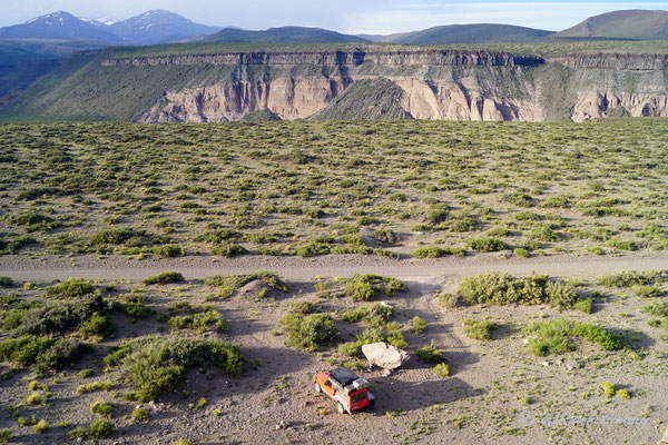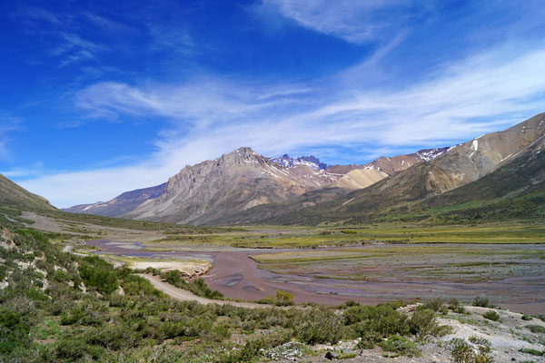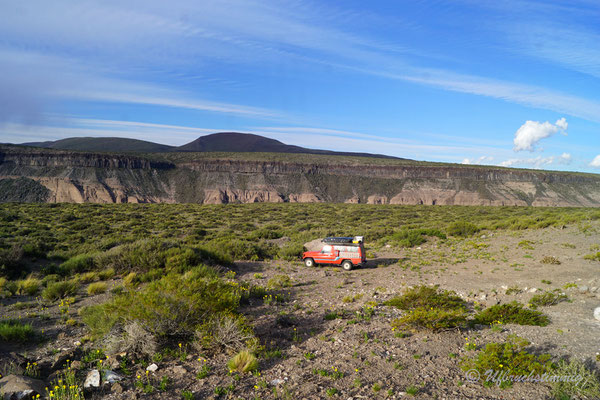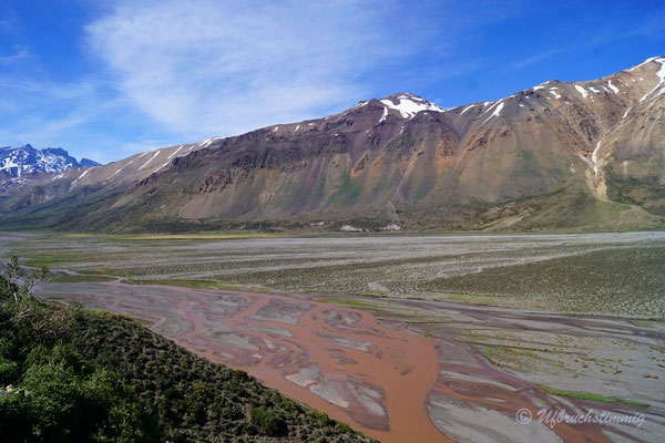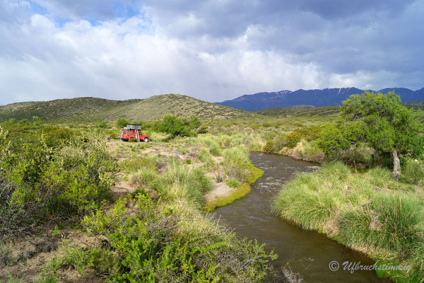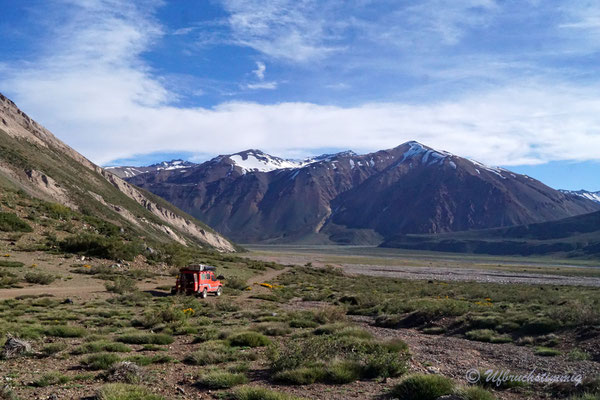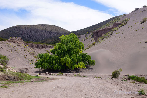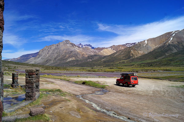 Dann wollen wir über Las Leñas ins Nachbarstal - aber auch hier müssen wir feststellen, dass die Strasse noch nicht geöffnet ist. Trotzdem hat es sich gelohnt, da wir hier kurz vor "Schneeräumungsende" einen super ruhigen Stellplatz am Gebirgsbach finden. Wir müssen uns nun aber damit abfinden, dass wir die "normale" RN40 fahren "müssen" und fahren zurück und südwärts. Durch beeindruckende Vulkanlandschaften führt uns die Strasse stetig südwärts.