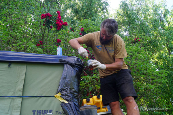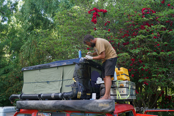 reparieren (der Shop in der Stadt war zu...). Wir halten also nochmals alle zusammen am Baumarkt.