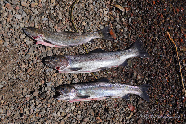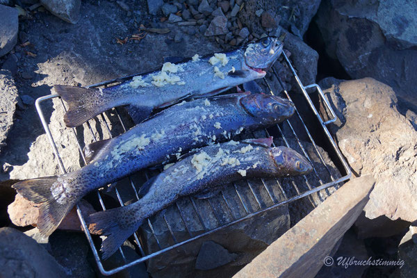 Schnell sind wir draussen und können das Ganze beobachten. Das Wasser steigt noch weiter an, aber extrem viel wird es nicht - unser ursprünglicher Platz bleibt trocken. Wir hätten also Glück gehabt. Dennoch hat es uns mal wieder gelehrt - nicht in Flussläufen campen...!!!
