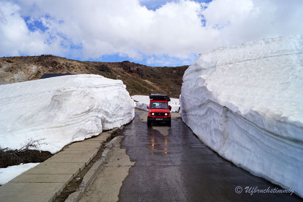 Man merkt aber, wir sind in der Vorsaison. Neben den doch einigen geschlossenen Strassen, an denen wir umdrehen mussten, gibt es ab und an noch etwas Schnee und der Frühling ist gerade am kommen. Aber dadurch finden wir auch an einigen Plätzen ein gigantisches Blütenmeer in gelb und rot vor.